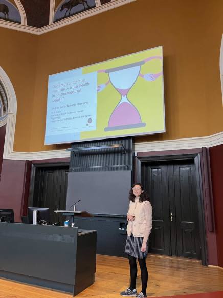 Et engelsk temamøde hvor PhD Andrea Tamariz-Elleman præsenterede “ Does regular exercise maintain vascular health in postmenopausal women? ” og den hollandske PhD Inge Groenendijk præsenterede “ The role of (animal and plant) protein in supporting bone health of older adults ” .